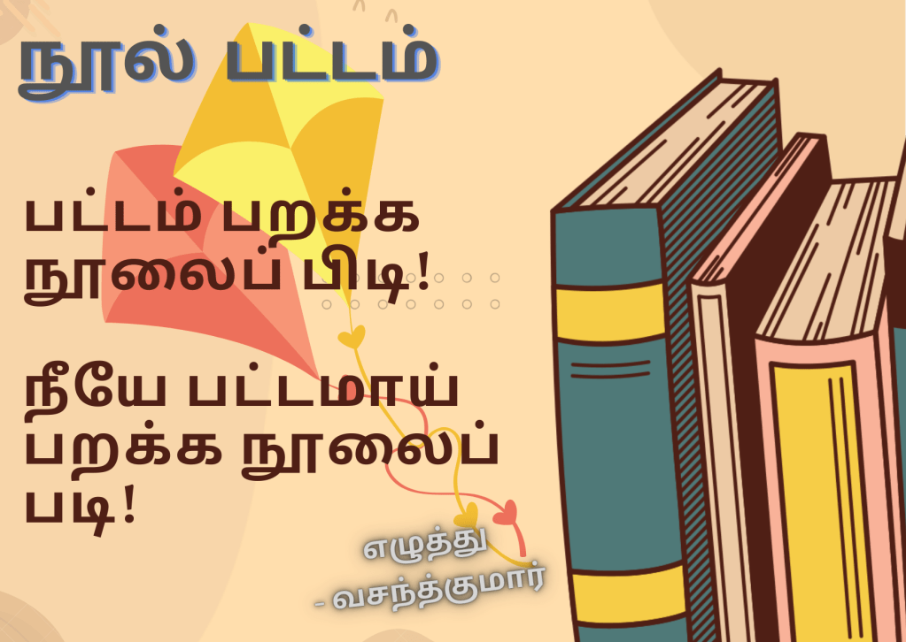 !!நூல் பட்டம்!! Posted byYKJuly 4, 2022Posted inPoemTags:BAANA, book, books, FLY, Haiku, KATHTHADI, kavithai, KITE, KITES, NOOL, PATTAM, Poem, song, STUDY, Tamil Share this: Click to share on Facebook (Opens in new window) Facebook Click to print (Opens in new window) Print Click to share on LinkedIn (Opens in new window) LinkedIn Click to share on WhatsApp (Opens in new window) WhatsApp Like Loading... Related Published by YK !!Passionate blogger!! View more posts